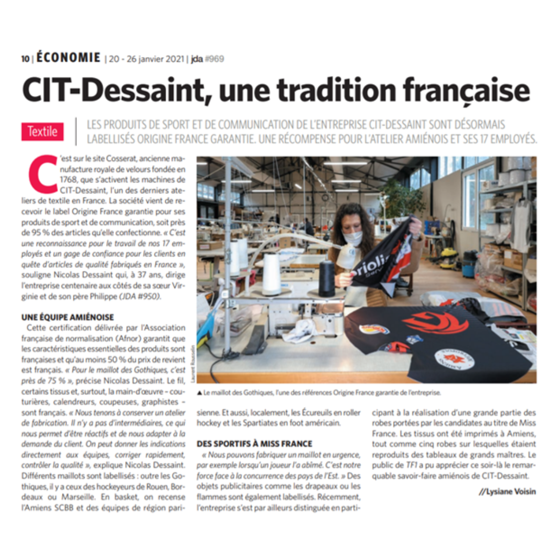 Depuis plus d’un siècle, CIT Dessaint a su évoluer sans jamais renier ses racines : de l’atelier familial de 1911 à l’installation sur le site historique de Cosserat, de la confection textile traditionnelle aux solutions modernes de personnalisation, l’entreprise a traversé les épreuves et accompagné les grandes évolutions de son temps. Portée par un savoir-faire transmis de génération en génération, elle a su se réinventer face aux défis économiques, technologiques et sociétaux, tout en restant fidèle à ses valeurs d’ancrage local, de qualité et d’agilité. Aujourd’hui, avec ses engagements en faveur du « Made in France », de la formation et de l’innovation responsable, CIT Dessaint poursuit son histoire avec la même ambition : valoriser les femmes, les hommes et les territoires qui font vivre chaque projet.